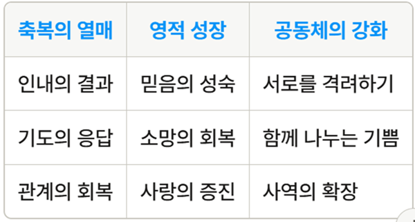 고난을 극복한 후, 우리는 하나님께서 주시는 축복을 경험하게 됩니다. 이러한 축복은 단순히 물질적인 것뿐만 아니라, 영적인 성장과 관계의 회복, 그리고 공동체의 강화로 이어집니다.
