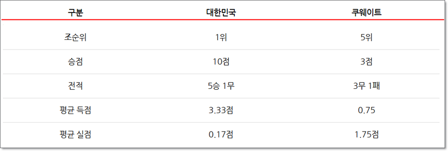 대한민국과 쿠웨이트의 역사적인 맞대결 기록(최근 5경기)