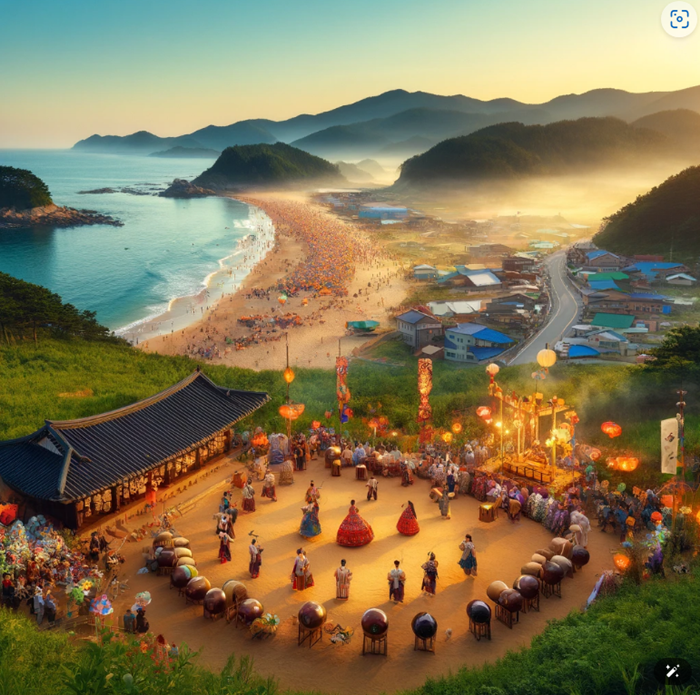 오후 2시부터는 동해안 해변에서 달집 태우기 행사가 진행됩니다. 달집은 나무로 만들어진 구조물로, 소원을 담아 태우는 행사입니다.